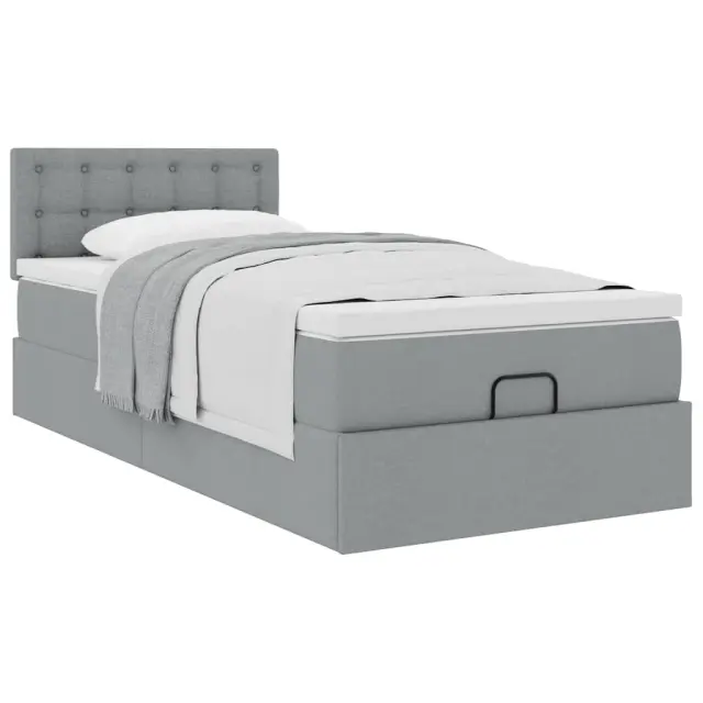 vidaXL Otomanski posteljni okvir z vzmetnico siv 80x200 cm blago