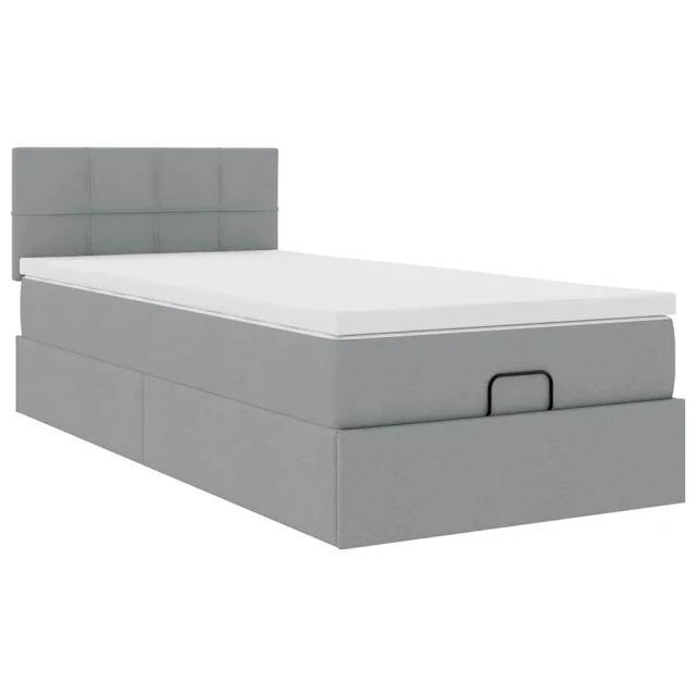 vidaXL Otomanski posteljni okvir z vzmetnico siv 80x200 cm blago