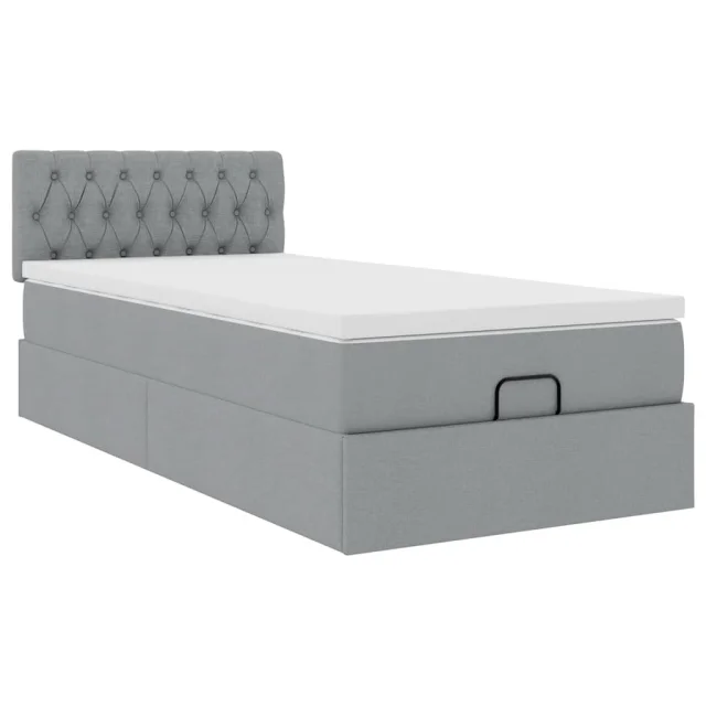 vidaXL Otomanski posteljni okvir z vzmetnico siv 80x200 cm blago