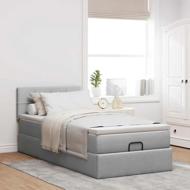S tem okvirjem za posteljo otoman z ležiščem lahko uživate v mirnem spancu! Ponuja vam rešitev za shranjevanje in udobno spanje.