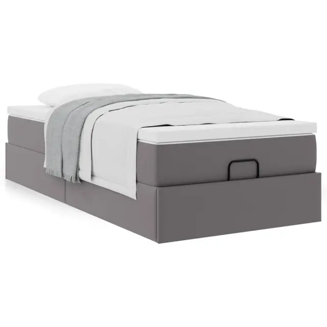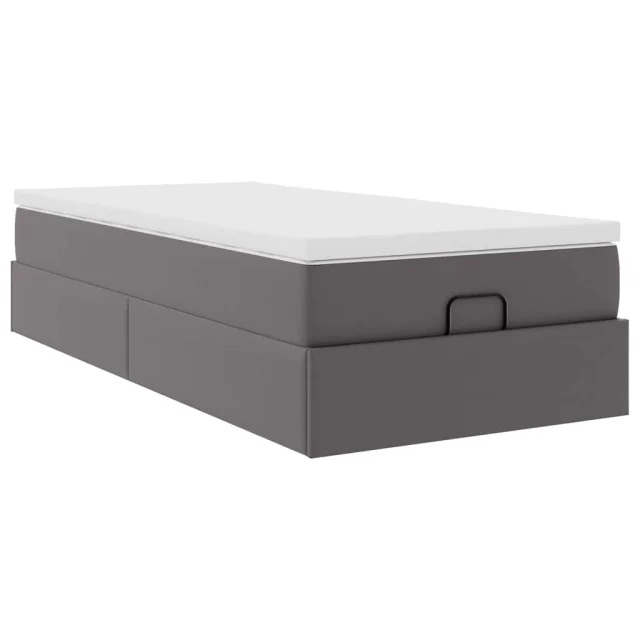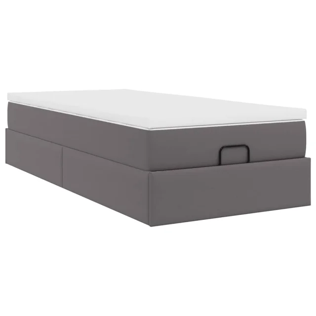 vidaXL Otomanski posteljni okvir z vzmetnico siv 90x190 cm um. usnje