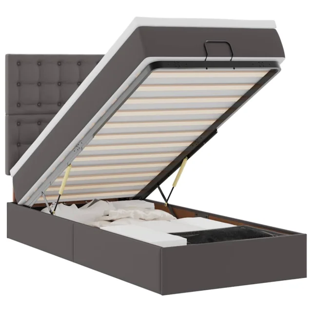 vidaXL Otomanski posteljni okvir z vzmetnico siv 90x190 cm um. usnje