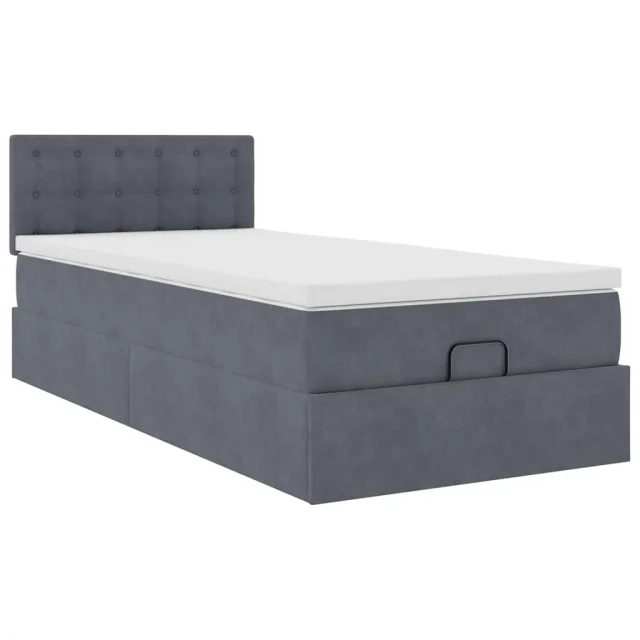 vidaXL Otomanski posteljni okvir z vzmetnico siv 90x190 cm žamet