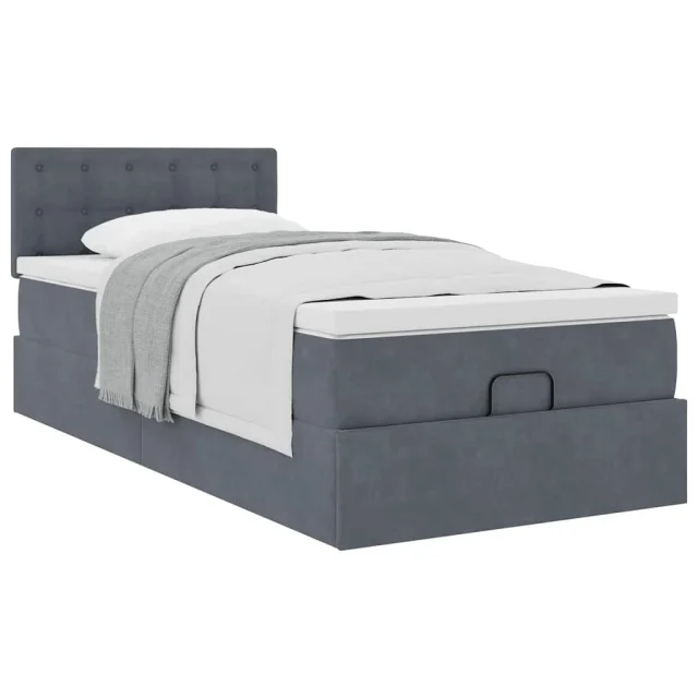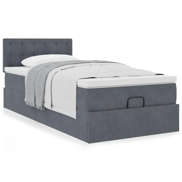vidaXL Otomanski posteljni okvir z vzmetnico siv 90x190 cm žamet