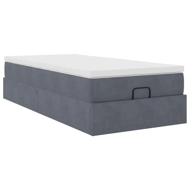 vidaXL Otomanski posteljni okvir z vzmetnico siv 90x190 cm žamet