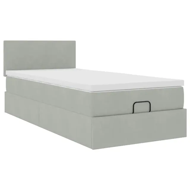 vidaXL Otomanski posteljni okvir z vzmetnico siv 90x200 cm žamet