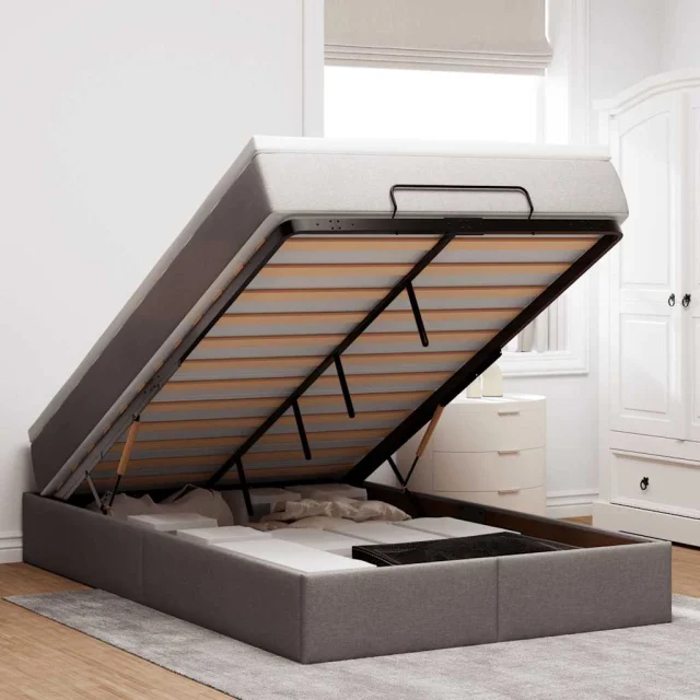 S tem okvirjem za posteljo otoman z ležiščem lahko uživate v mirnem spancu! Ponuja vam rešitev za shranjevanje in udobno spanje.