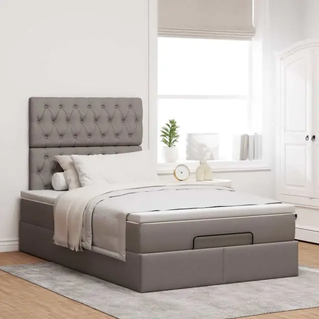 vidaXL Otomanski posteljni okvir z vzmetnico taupe 120x200 cm blago