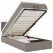 • Veliko prostora za shranjevanje pod posteljo: Zahvaljujoč hidravličnemu dvižnemu mehanizmu je pod posteljnim okvirjem na voljo veliko prostora za shranjevanje pod posteljo, kar povečuje prostor, ne da bi zavzemal dodatno talno površino. S preprostim potegom ročaja se podnožje z letvami gladko dvigne, tako da lahko hitro in brez napora poberete svoje predmete.