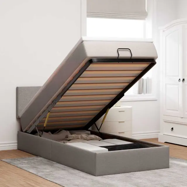 S tem okvirjem za posteljo otoman z ležiščem lahko uživate v mirnem spancu! Ponuja vam rešitev za shranjevanje in udobno spanje.