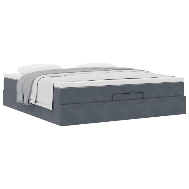 vidaXL Otomanski posteljni okvir z vzmetnico temno siv 180x200cm žamet