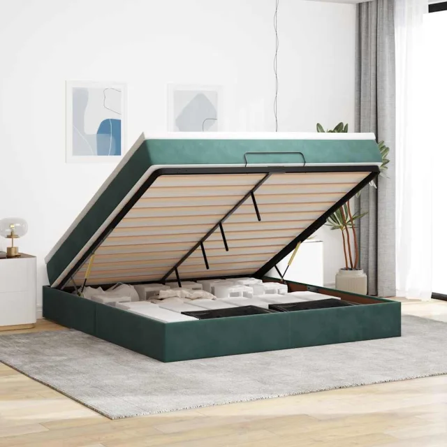 S tem okvirjem za posteljo otoman z ležiščem lahko uživate v mirnem spancu! Ponuja vam rešitev za shranjevanje in udobno spanje.
