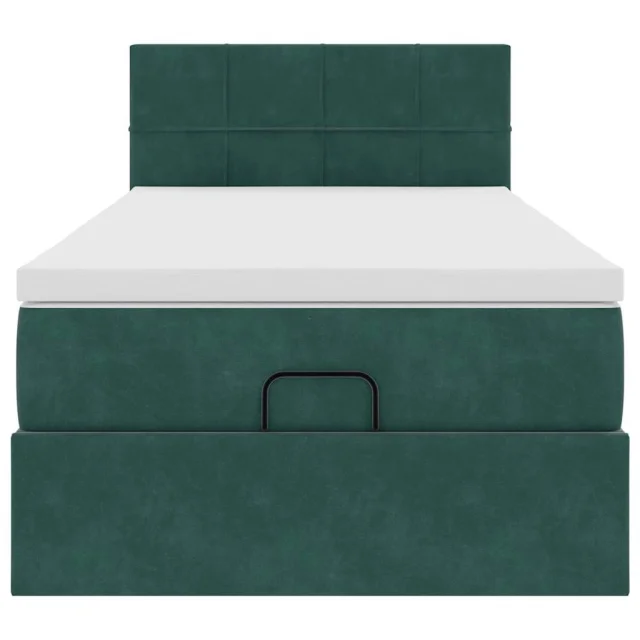 vidaXL Otomanski posteljni okvir z vzmetnico zelen 90x190 cm žamet