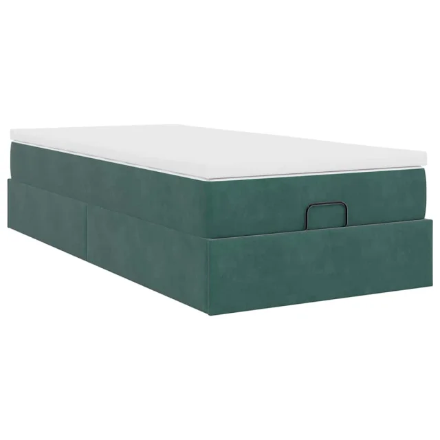 vidaXL Otomanski posteljni okvir z vzmetnico zelen 90x200 cm žamet