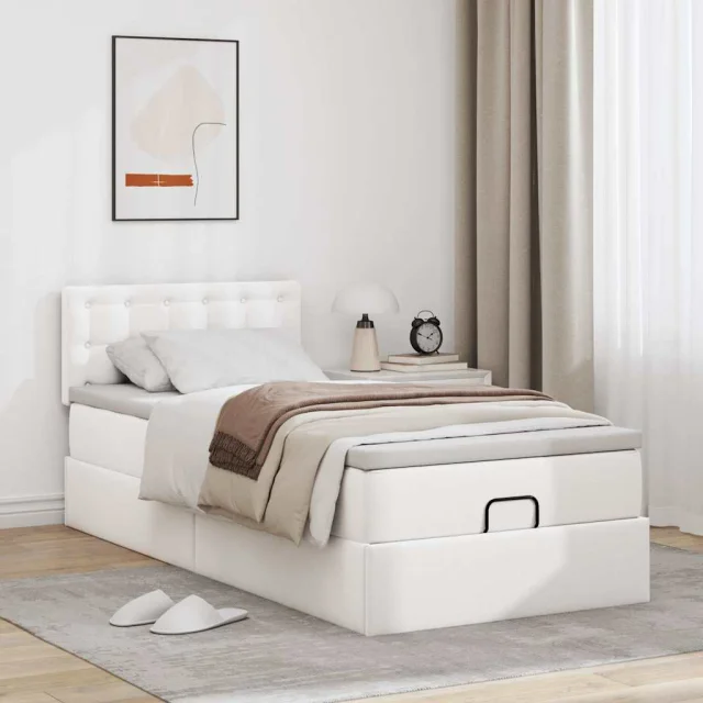 vidaXL Otomanski posteljni z vzmetnico bel 100x200 cm um. usnje