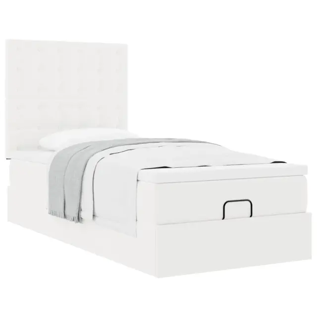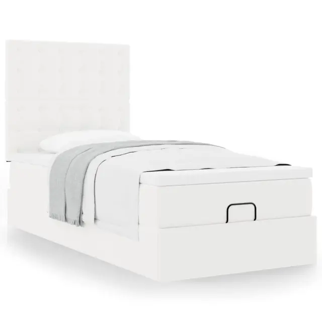vidaXL Otomanski posteljni z vzmetnico bel 90x190 cm um. usnje