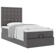 vidaXL Otomanski posteljni z vzmetnico siv 90x200 cm um. usnje