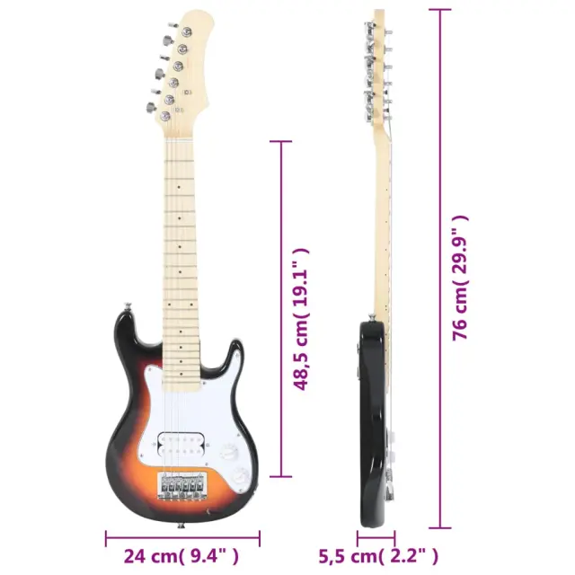 vidaXL Otroška električna kitara s torbo rjava in bela 3/4 30"