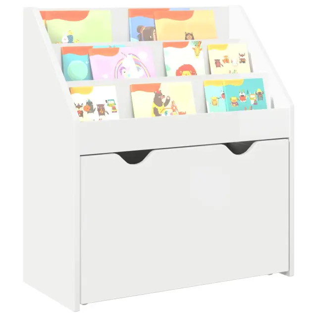 vidaXL Otroška knjižnica s predalom Visok sijaj bela 60 x 29,5 x 69 cm