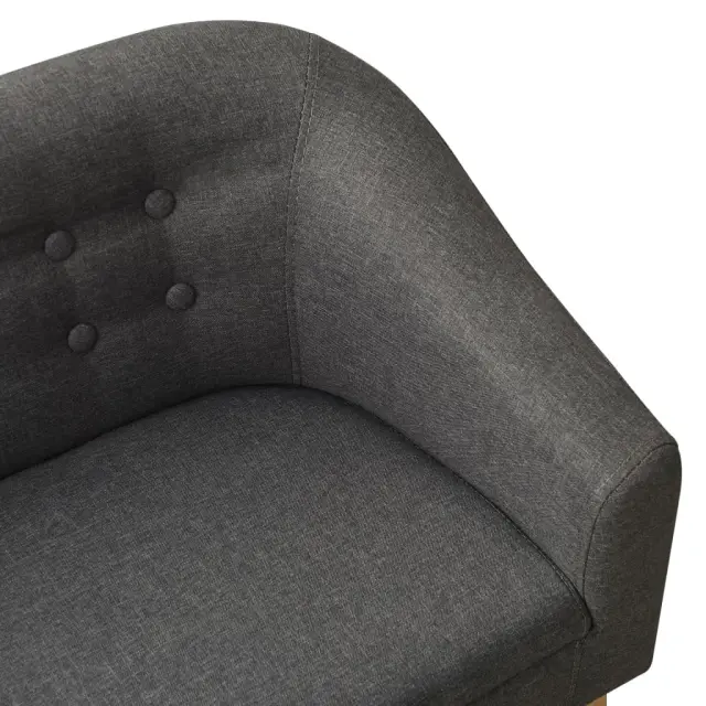 Ta kavč s penastim polnilom in okvirjem iz vezanega lesa majhnim otrokom nudi udoben in varen prostor za sproščanje in igro. Naslonjalo z gumbom bo všeč vašemu otroku. Trdne noge iz kavčukovca prispevajo k dodatni stabilnosti. Ta kavč je privlačen dodatek, ki s svojim razkošnim izgledom dopolnjuje vsak prostor v domu.