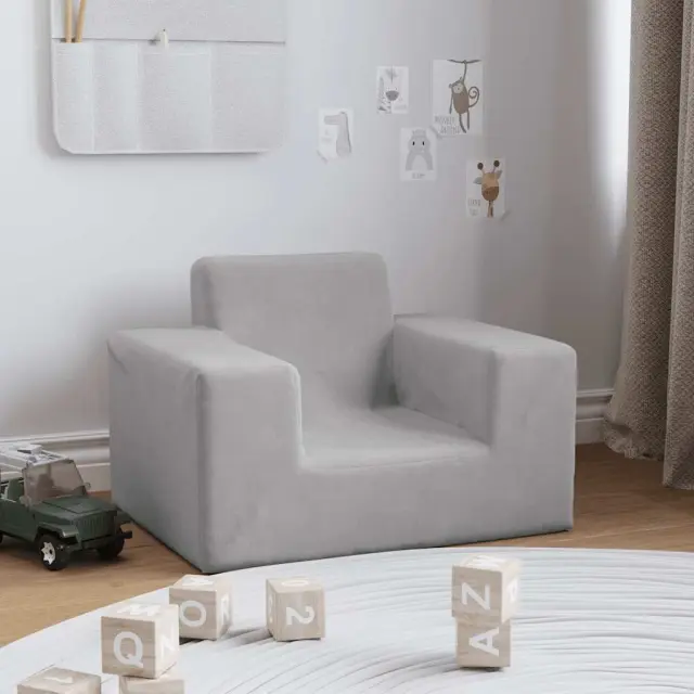 vidaXL Otroški kavč svetlo siv mehak pliš