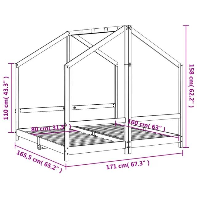 vidaXL Otroški posteljni okvir 2x(80x160)cm trdna borovina