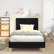 vidaXL Otroški posteljni okvir z vznožjem Črna 90 x 200 cm blago