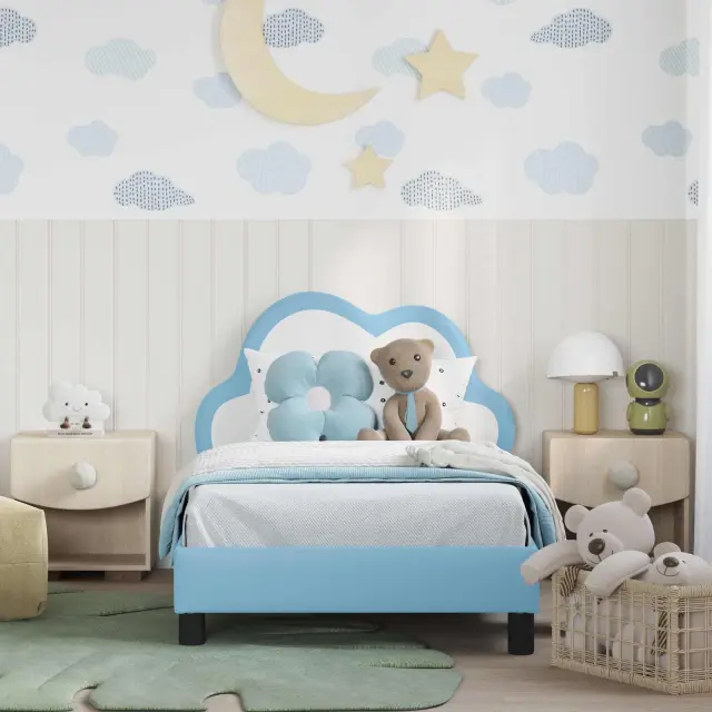 vidaXL Otroški posteljni okvir z vznožjem Modra 80 x 160 cm PU