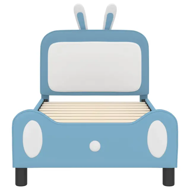 vidaXL Otroški posteljni okvir z vznožjem Modra 80 x 160 cm PU