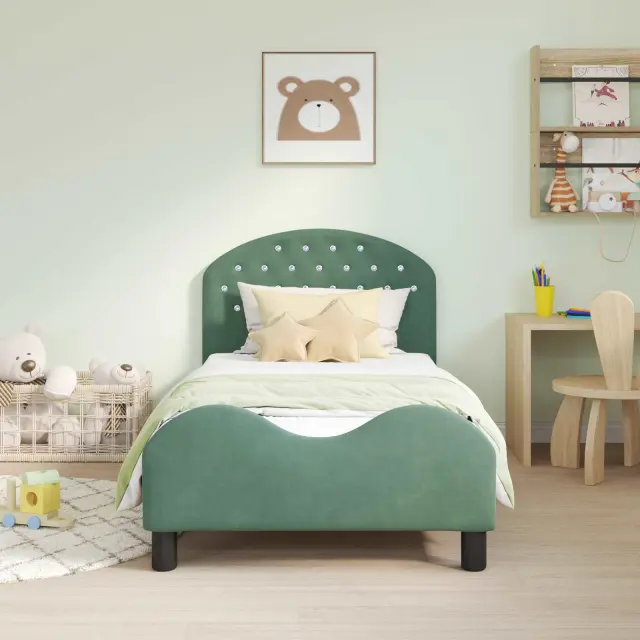 vidaXL Otroški posteljni okvir z vznožjem Morsko zelena 80 x 160 cm