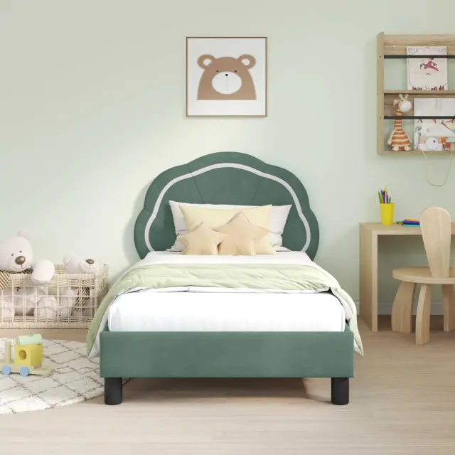 vidaXL Otroški posteljni okvir z vznožjem Morsko zelena 80 x 160 cm