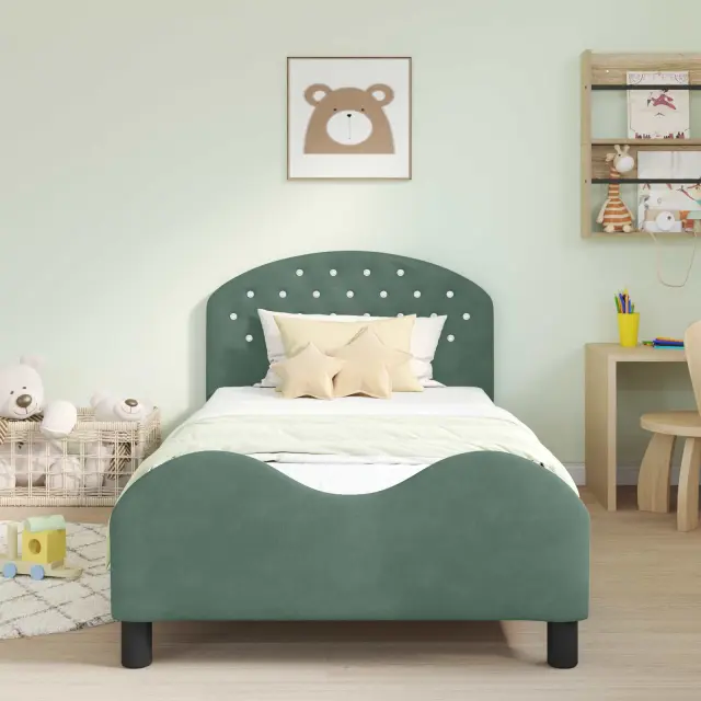 vidaXL Otroški posteljni okvir z vznožjem Morsko zelena 90 x 200 cm
