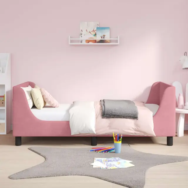 vidaXL Otroški posteljni okvir z vznožjem Roza 80 x 160 cm Žamet