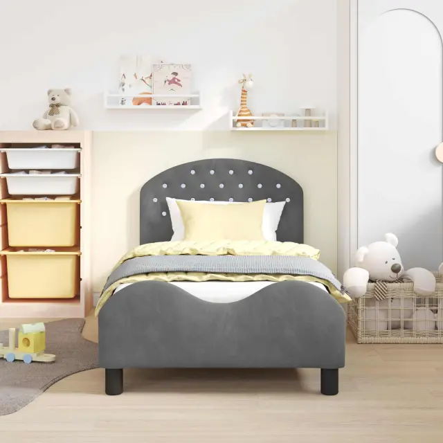 vidaXL Otroški posteljni okvir z vznožjem Temno siva 80 x 160 cm Žamet
