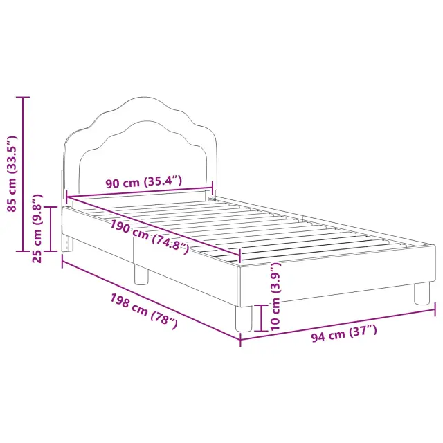 vidaXL Otroški posteljni okvir z vznožjem Vijolična 90 x 190 cm Žamet