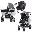 vidaXL Otroški voziček 3 v 1 aluminijast sive in črne barve