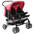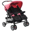 vidaXL Otroški voziček za dvojčke roza in črn jeklen