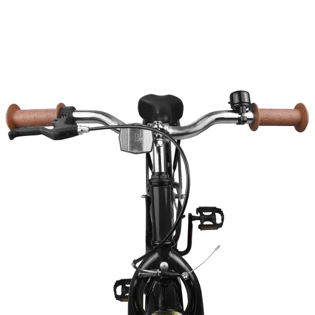 To otroško kolo z nastavljivim krmilom in sedežem izžareva klasičen videz. Zasnovano za mlade voznike, združuje tradicionalni stil s praktičnimi funkcijami, primernimi za vožnje po soseski. Zasnovano za dolgotrajno uporabo, to kolo otrokom omogoča svobodo pri raziskovanju na prostem. Elegantni jekleni okvir in gumijasti ročaji mu dajo tako stil kot tudi praktičnost.