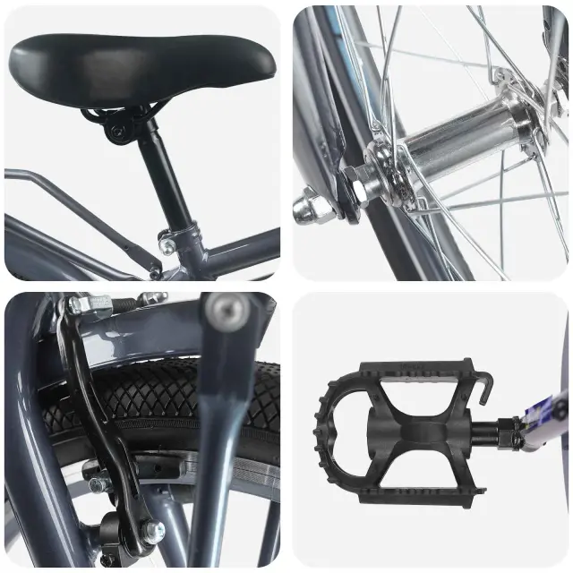 • Klasičen zavorni sistem: Opremljeno s klasičnim zavornim mehanizmom, ki omogoča varno ustavljanje, kar povečuje varnost vožnje. Enostavno je za uporabo, tako da mladi kolesarji z lahkoto ustavijo.