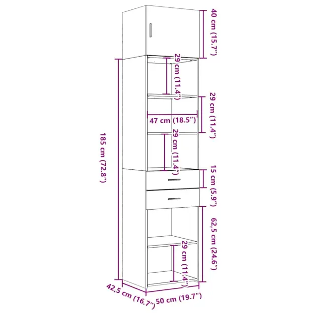 vidaXL Ozka omara za shranjevanje siva sonoma 50x42,5x225 cm inž. les