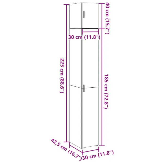 vidaXL Ozka omara za shranjevanje rjavi hrast 30x42,5x225 cm inž. les