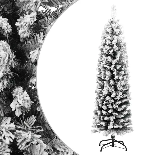 vidaXL Ozka umetna novoletna jelka s snegom zelena 120 cm PVC
