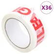 vidaXL Pakirni trak 36 kosov z napisom FRAGILE bel 48 mm x 60 m
