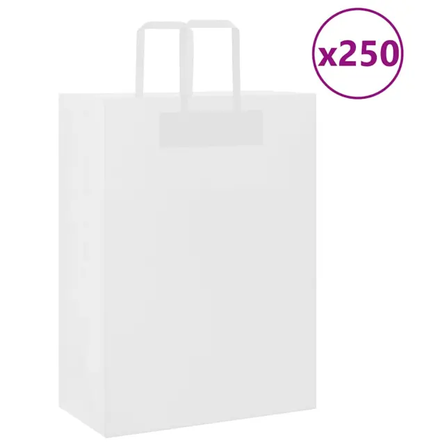 vidaXL Papirnate vrečke 250 kosov z ročaji bela 32x17x44 cm