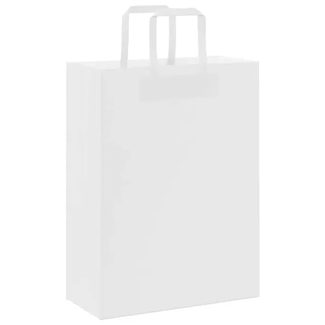 vidaXL Papirnate vrečke 250 kosov z ročaji bela 26x12x35 cm