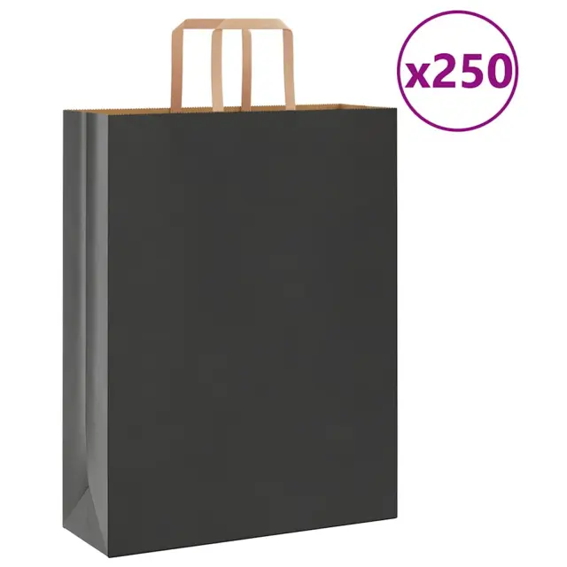 vidaXL Papirnate vrečke 250 kosov z ročaji črne barve 32x12x42 cm