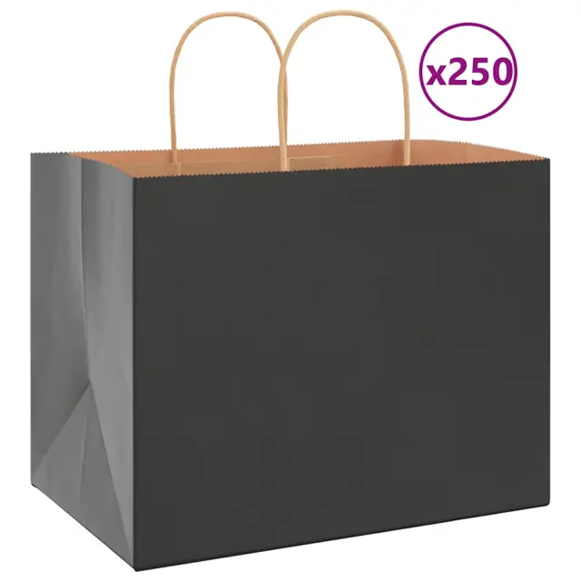 vidaXL Papirnate vrečke 250 kosov z ročaji črne barve 32x22x24 cm