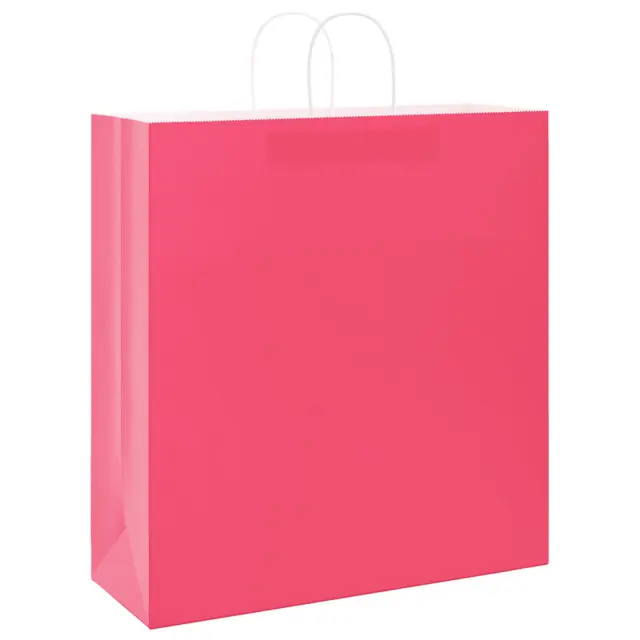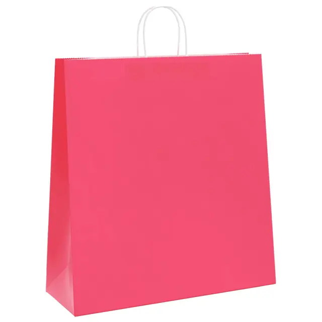 vidaXL Papirnate vrečke 250 kosov z ročaji roza 45x17x48 cm