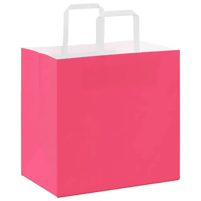 vidaXL Papirnate vrečke 250 kosov z ročaji roza 26x17x25 cm