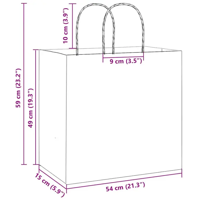 • Praktična zasnova ročaja: Papirnate vrečke imajo varno pritrjene ročaje iz papirnate vrvi, ki omogočajo enostavno prenašanje in prenašanje daril.